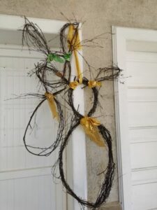 Avec des branches de bouleau souples, ils ont tressé têtes, corps et oreilles de lapin avant de les lier avec de jolis rubans. Ils pourront agrémenter nos jardins lors de la traditionnelle chasse aux œufs de Pâques.