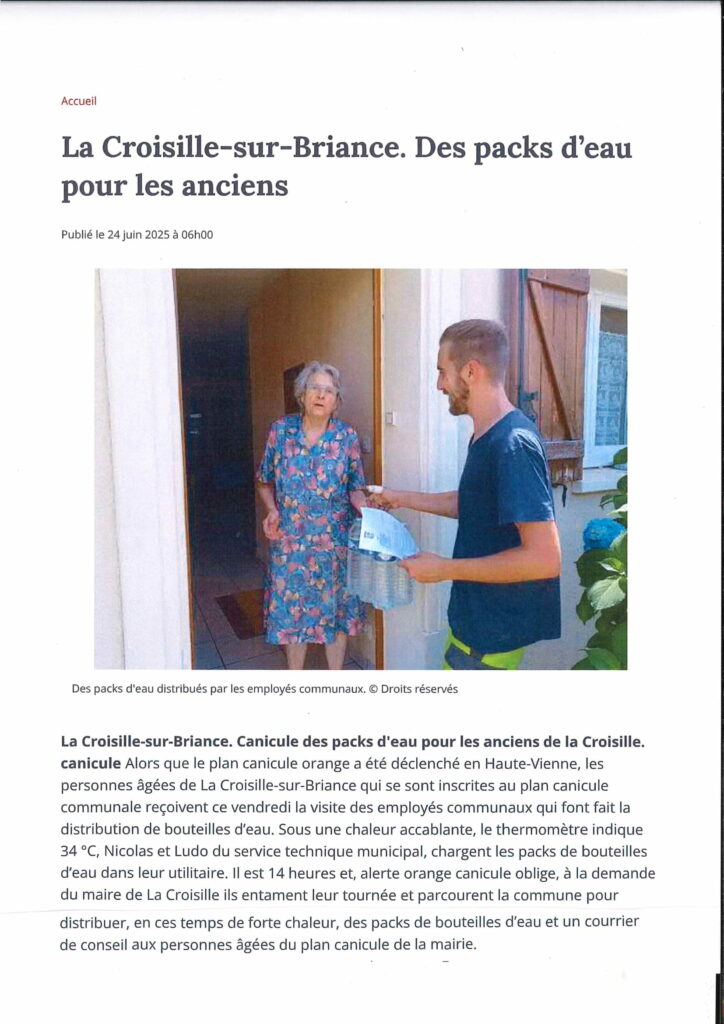 CANICULE DES PACKS D’EAU POUR LES ANCIENS DE LA CROISILLE