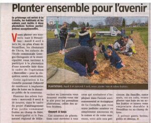 Pour la cinquiéme année suucésive dans le cadre de l’opération Haiécolier de la reconquête de la biodiversité , les chasseurs Jean Paul Gapillout, Guy Ocquidant et Carlos Texera, le Maire Jean-Gérard Didierre et l’élue Françoise Raffier avec les maitresses Laura et lucie avec et les élèves de La Croisille-sur-Briance ont participé à la plantation de deux nouvelles haies.