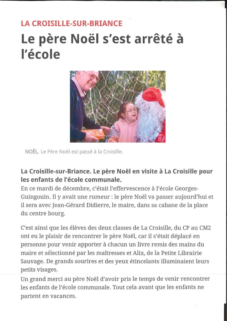 Article du Populaire du 25 décemebre du la venue du Pére Noêl à l’école de La Croisille