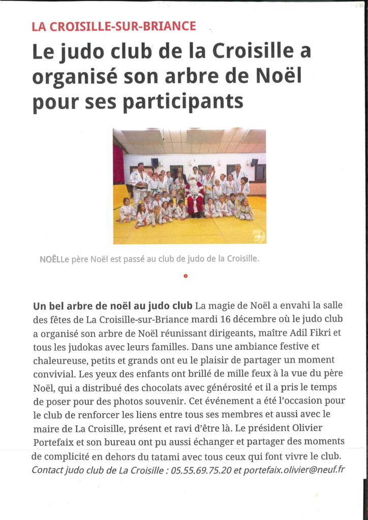 Article du Populaire du 27 décembre sur le noêl du Judo-Club de La Croisille-sur-Briance .