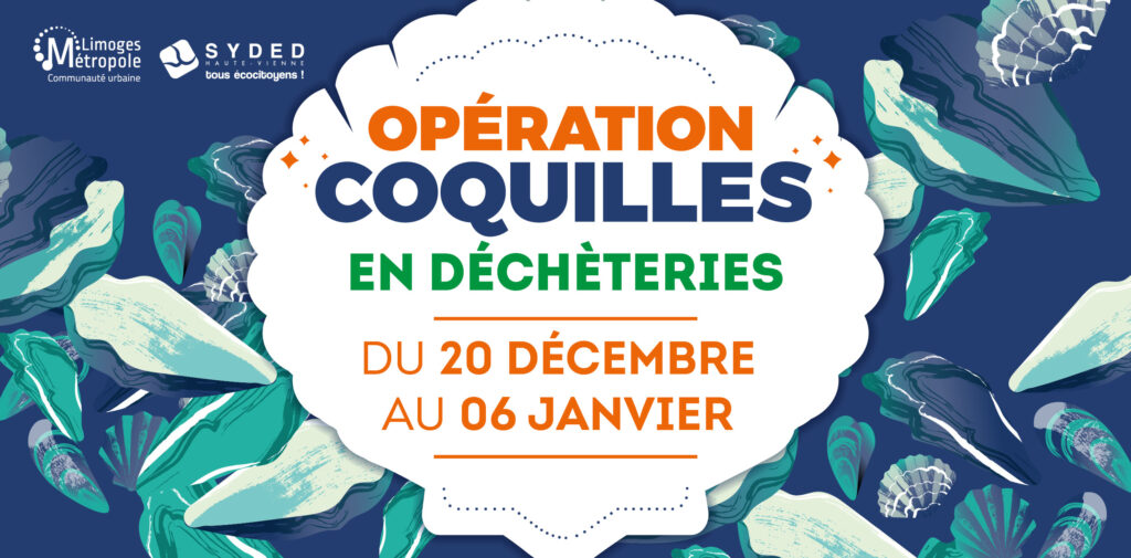 Du 20 décembre 2025 au 6 janvier 2026, le SYDED 87 propose une collecte spéciale de coquilles d’huîtres, de moules, de Saint-Jacques ou encore d’escargots dans toutes les déchèteries du territoire dans les caisse-palettes dédiées en déchèterie.