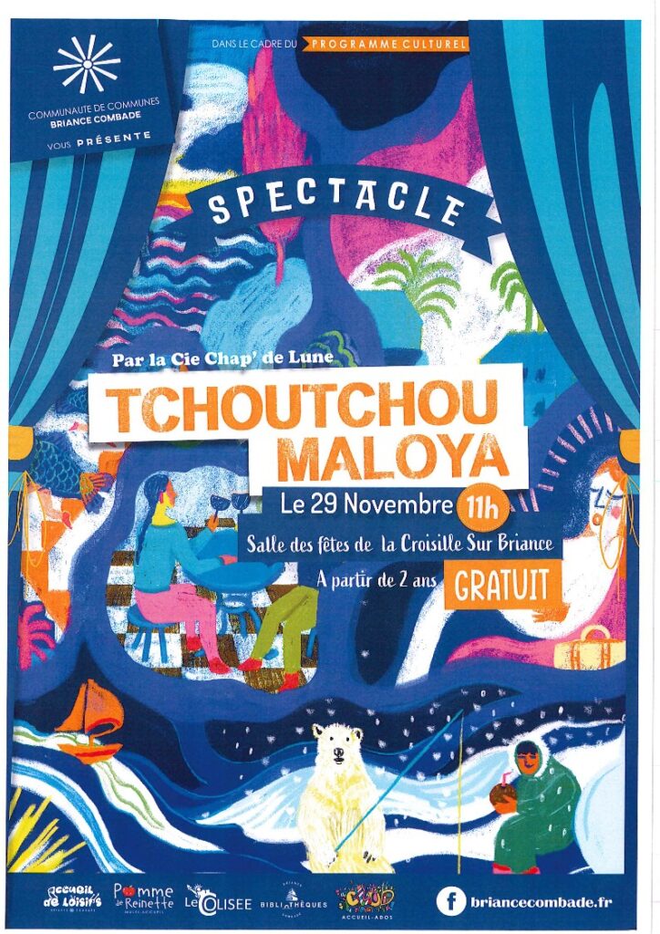 Saturday 29 November: 11am Show for children ‘Tchou Maloya’ from Briance-Combade – at the Salle des Fetes in La Croisille.