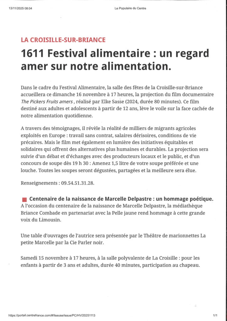 Article du Populaire du 14 novembre 2025