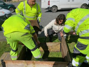 Un nouveau bac à compost a été installé avec le panneau « servez-vous » pour que les personnes qui le souhaitent se servent en compost très bientôt.