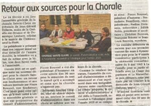 Article du Populaire du 17 amrs sur l’AG de la chorale Ste Claire