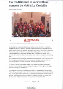UN NOUVEL EVENEMENT GRATUIT A LA CROISILLE-SUR-BRIANCE CE DIMANCHE 15 DECEMBRE A 17h NE MANQUEZ PAS LE 16 éme CAROL CONCERT DE NOÊL A l’EGLISE.Article Le Populaire du 14 décembre 2024