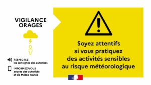 Météo-France a émis une alerte de VIGILANCE JAUNE ORAGES pour le département pour la journée de dimanche. Des #orages sont prévus dans l’après-midi, pouvant entraîner de la grêle et des précipitations abondantes.Début : 15h