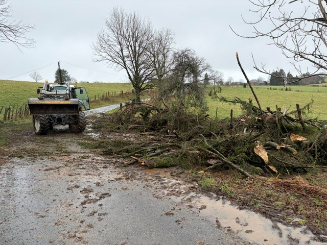 Par le hasard des calendriers, Nicolas LARTISIEN s’est retrouvé tout seul du service technique pour travailler ce matin depuis 6 heures pour le dégagement des routes de la commune, la gestion des inondations, le ruissellement, les fossés saturés, et surtout leS arbres sur les routes… !