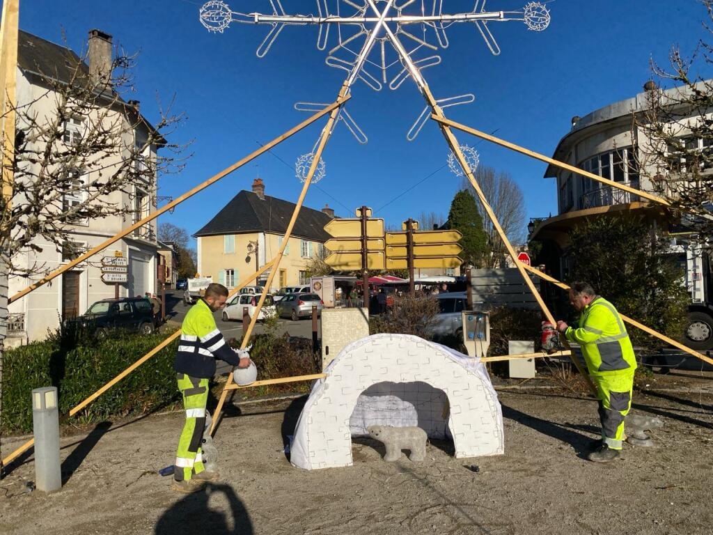 Toutes les autres décorations réalisées par le service technique de la ville, le sont à partir de matériaux de récupération. Et certaines guirlandes, acquises auprès d’autres collectivités, ont été retravaillées pour embellir la place.