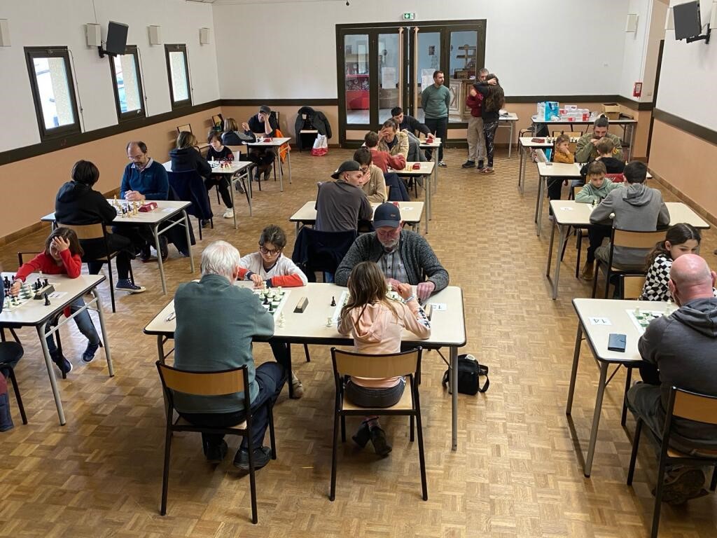 Malgré un dimanche pluvieux, 28 participants, âgés de 6 à 86 ans, se sont retrouvés autour de l’échiquier dans une ambiance chaleureuse et respectueuse.